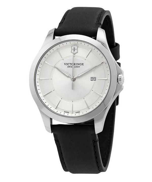 Victorinox Swiss Army Alliance Leather Strap Silver Dial Quartz 241905 100M Men's Watch