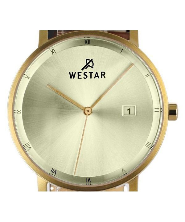 Westar Profile Black Leather Strap Light Champagne Dial Quartz 50221GPN102 Mens Watch