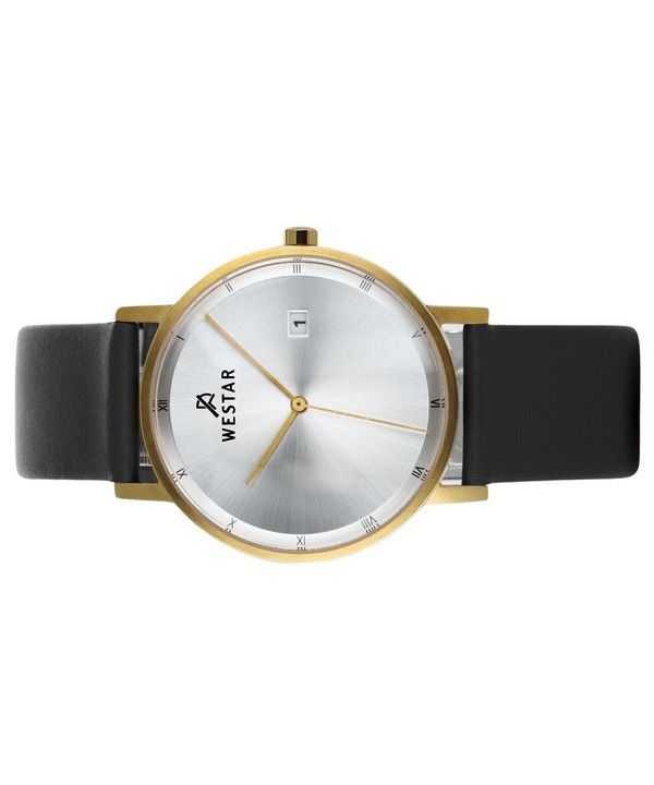 Westar Profile Black Leather Strap Silver Dial Quartz 50221GPN107 Mens Watch