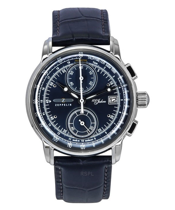 Zeppelin 100 Jahre Chronograph Leather Strap Blue Dial Quartz 86703 Men's Watch