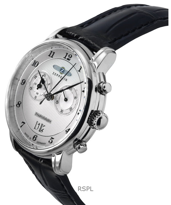 Zeppelin Friedrichshafen Leather Strap Silver Dial Quartz 85844 Men's Watch